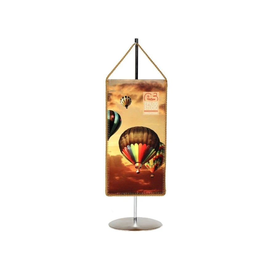 Stolne zastavice izrađujemo na platnu kaširanom na tvrdu podlogu na koju šivamo ukrasni konop. Uz zastavice nudimo metalne stalke.